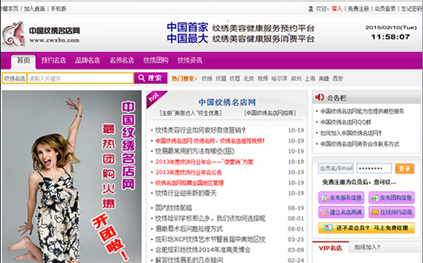 客戶簡(jiǎn)介:中國(guó)紋繡名店網(wǎng)是中國(guó)首家紋繡美容健康服務(wù)預(yù)約平臺(tái)、是中國(guó)最大紋繡美容健康服務(wù)消費(fèi)平臺(tái)。中國(guó)紋繡名店網(wǎng)是在中國(guó)美發(fā)美容協(xié)會(huì)指導(dǎo)下,由中環(huán)文化傳媒(北京)有限公司、紋繡名師胡玉玲,聯(lián)合業(yè)內(nèi)知名品牌公司以及知名網(wǎng)絡(luò)有限公司頃力打造,并打造出中國(guó)美容名店網(wǎng)等“名店”系列門戶網(wǎng)站。