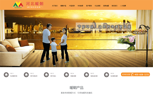 客戶簡(jiǎn)介: 暖朝電地暖從發(fā)熱材料的研發(fā)到發(fā)熱產(chǎn)品的生產(chǎn)申報(bào)5項(xiàng)國(guó)家發(fā)明專利和10項(xiàng)國(guó)家實(shí)用新型專利,2011年7月榮膺中國(guó)地暖最佳銷售企業(yè)獎(jiǎng)!20年企業(yè)文化,全國(guó)32個(gè)城市120多家門店連鎖直銷,超過幾百萬平米的智能采暖系統(tǒng)工程,幫助眾多追求健康完美生活的人們,實(shí)現(xiàn)了生活品質(zhì)的又一次飛躍。