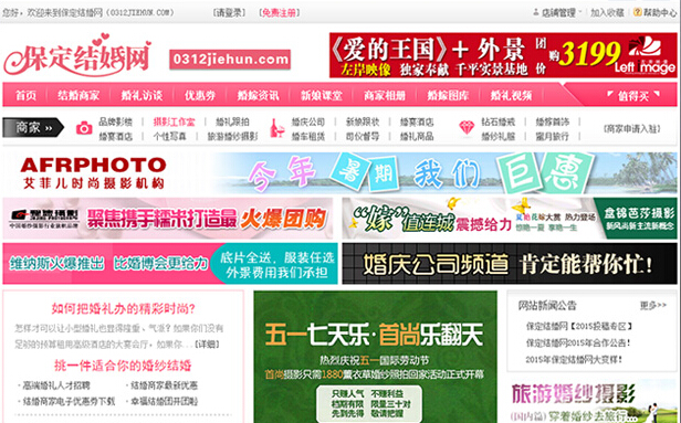 客戶簡(jiǎn)介:保定結(jié)婚網(wǎng)(0312JIEHUN.COM)是保定地區(qū)具有專業(yè)水準(zhǔn)的婚慶行業(yè)平臺(tái),聚集并多方位的整合了保定眾多婚嫁商家信息,實(shí)現(xiàn)了人和婚嫁行業(yè)的高效溝通。保定結(jié)婚網(wǎng)致力于為商家提供展示品牌形象、為新人提供前沿婚嫁資訊信息與商情服務(wù),已成為商家和新人互動(dòng)、交流的直接有效渠道和平臺(tái)。